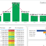 • На одном графике видно динамику затрат по каждому рекламному каналу.