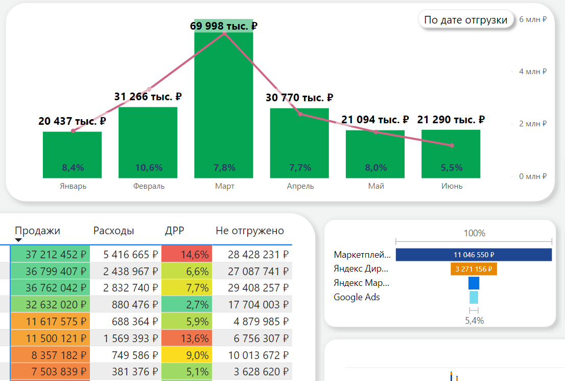 • Ежедневный контроль продаж и расходов на рекламу. Видите что проседает, быстро принимаете решение, экономите деньги.